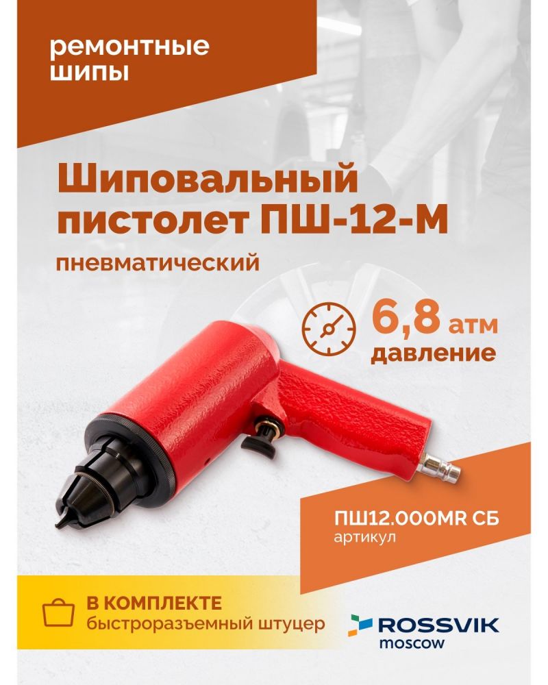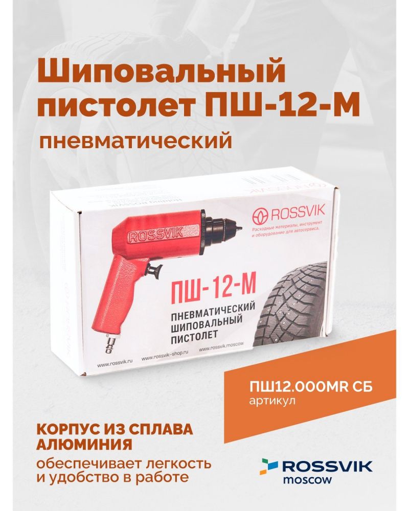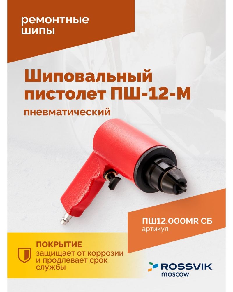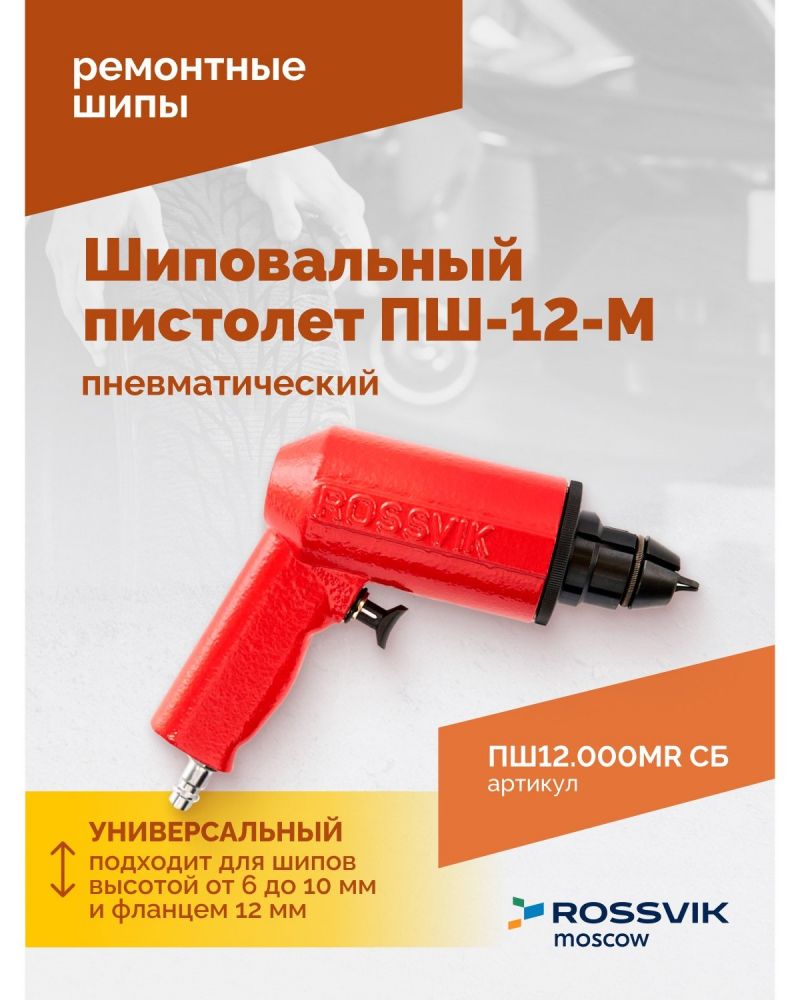 Пневматический шиповальный пистолет ROSSVIK ПШ-12-М подходит для шипов ремонтных, что позволяет быстро и эффективно восстановить зимние автошины.