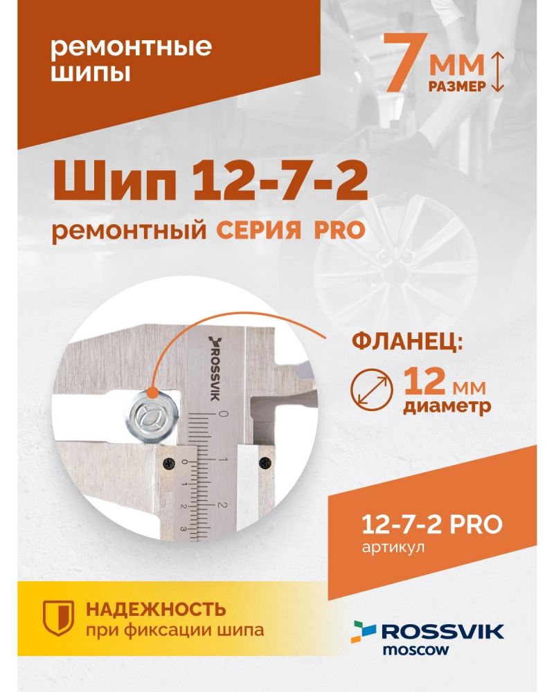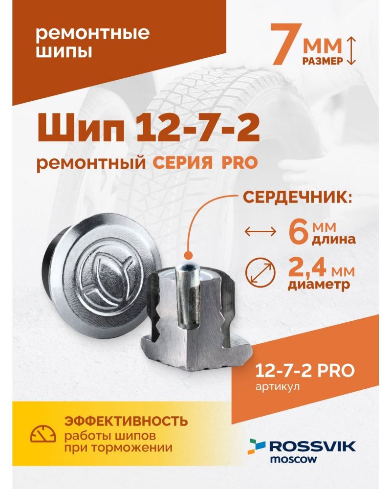 Шип ремонтный для резины ROSSVIK 12-7-2 серия PRO (коробка 500шт) - предназначен для восстановления зимних автошин. Позволяют сэкономить до 75% от стоимости новых колес и продлевают срок службы зимней резины на 2-3 года.