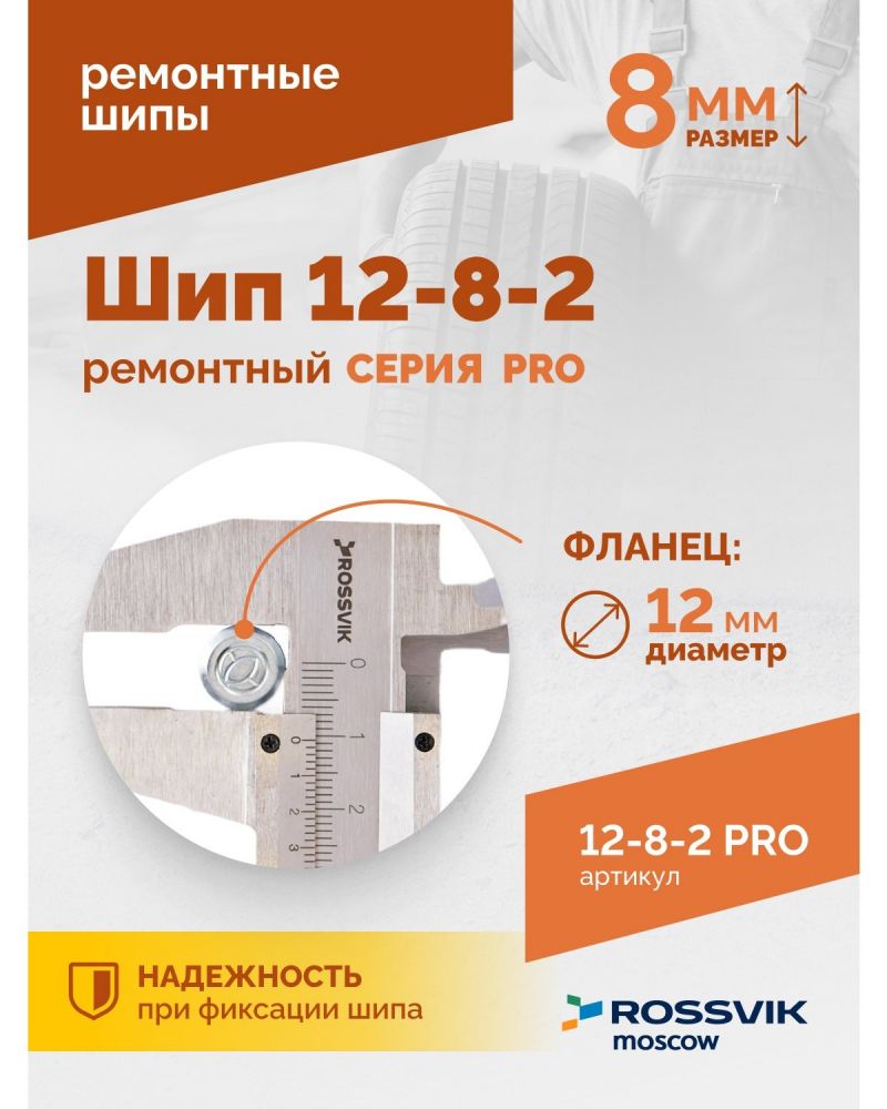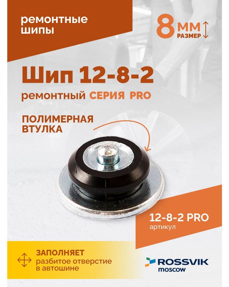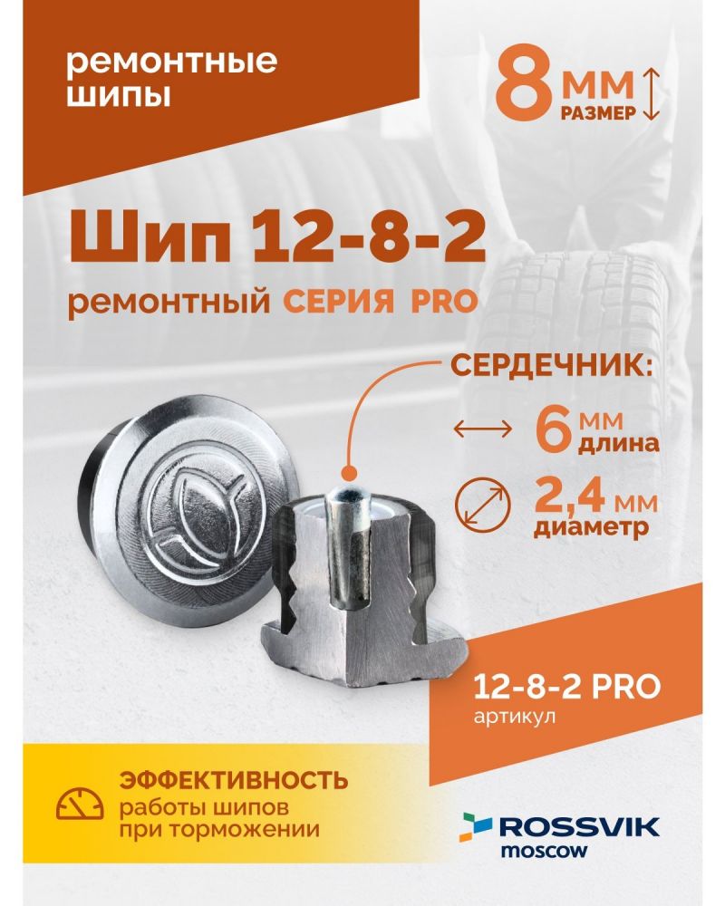 Шип ремонтный для резины ROSSVIK 12-8-2 серия PRO (коробка 500шт) - предназначен для восстановления зимних автошин. Позволяют сэкономить до 75% от стоимости новых колес и продлевают срок службы зимней резины на 2-3 года.