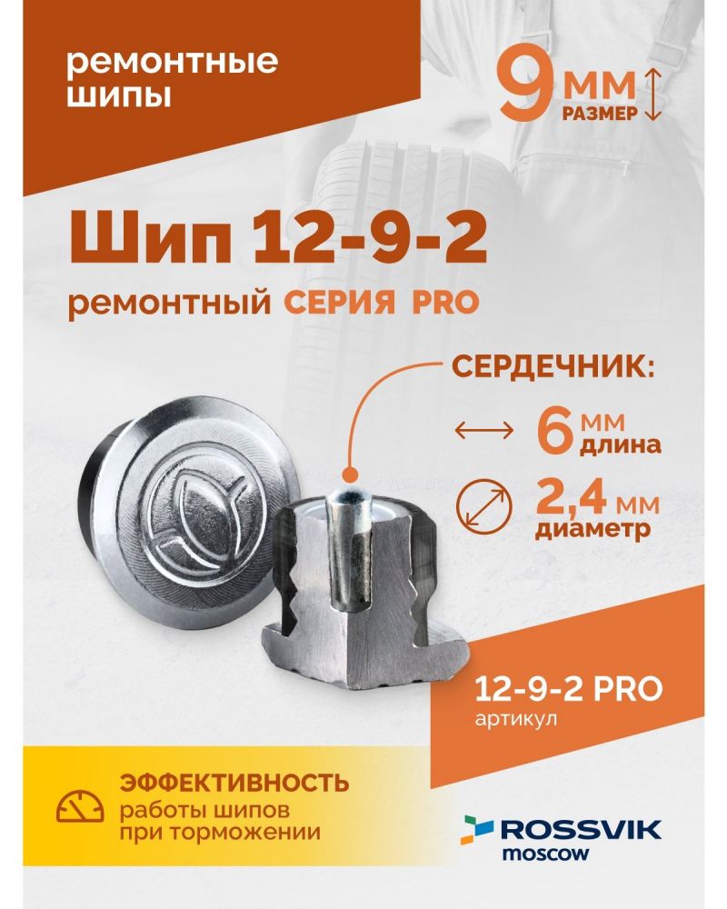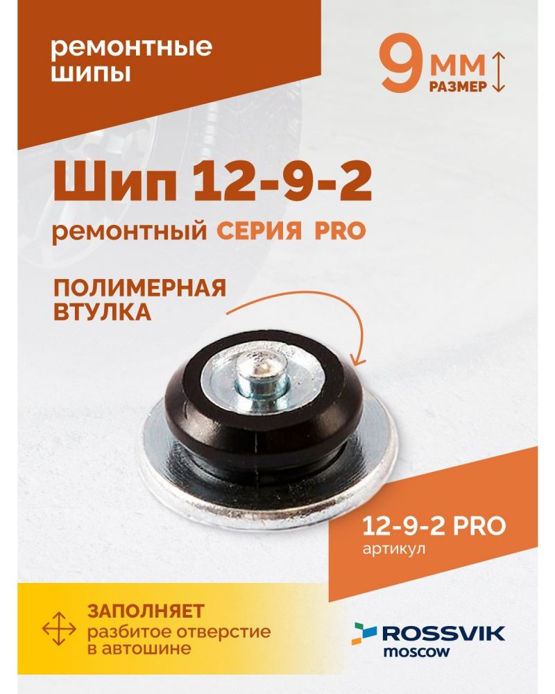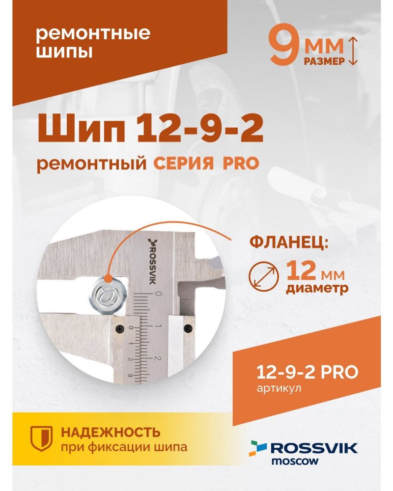 Шип ремонтный для резины ROSSVIK 12-9-2 серия PRO (коробка 500шт) - предназначен для восстановления зимних автошин. Позволяют сэкономить до 75% от стоимости новых колес и продлевают срок службы зимней резины на 2-3 года.