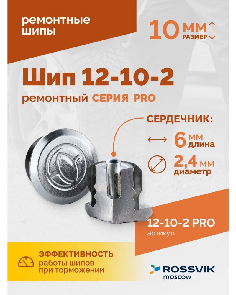Шип ремонтный для резины ROSSVIK 12-10-2 серия PRO (коробка 500шт) - предназначен для восстановления зимних автошин. Позволяют сэкономить до 75% от стоимости новых колес и продлевают срок службы зимней резины на 2-3 года.