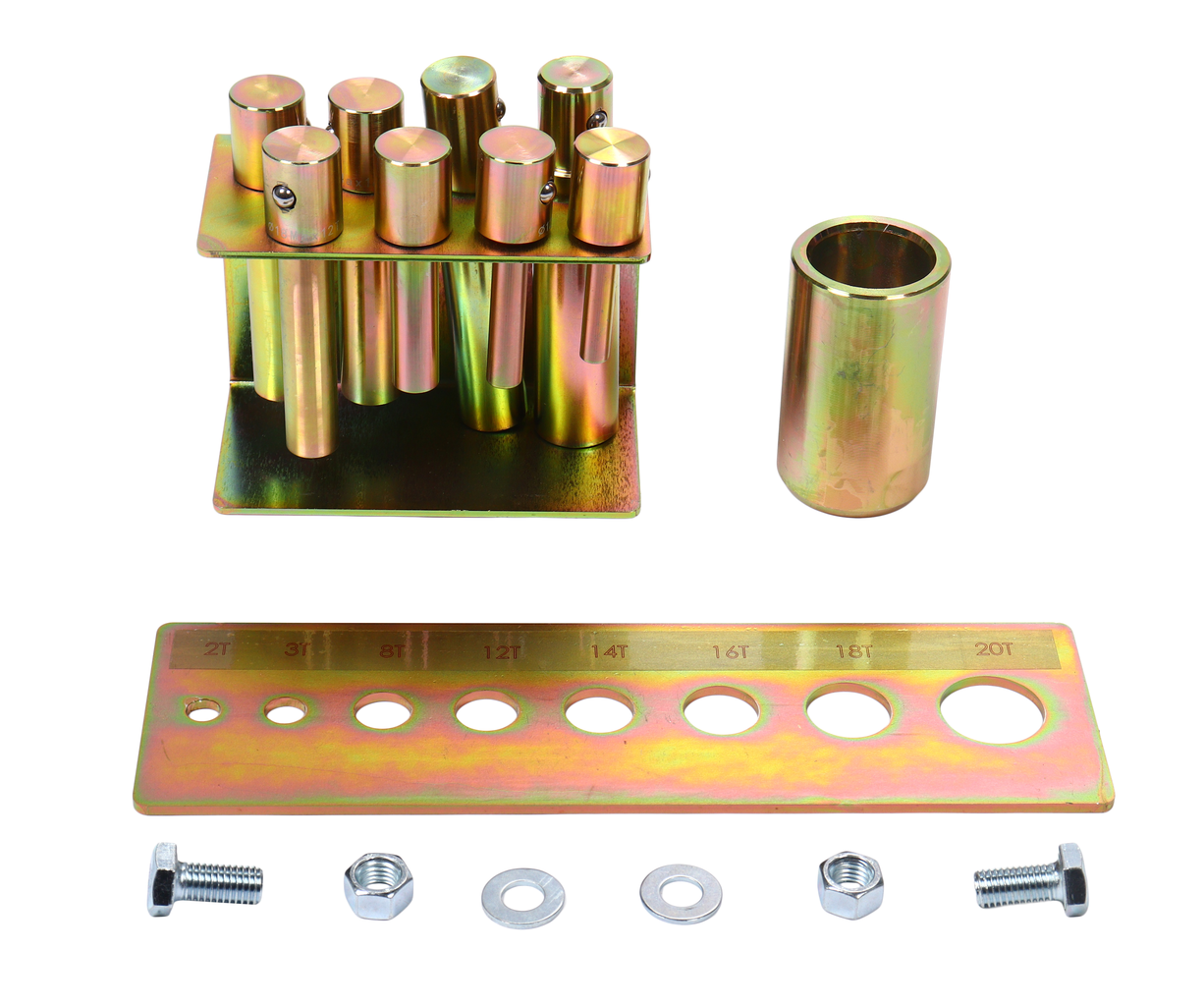 Комплект пуансонов GTE-HP13000-01 предназначен для гидравлических прессов. Оснастка применяется для расширения технических возможностей оборудования. Характеристики: Размер пуансонов (8 шт.): 10 мм - усилие 2 т 12 мм - усилие 3 т 16 мм - усилие 8 т 18 мм - усилие 12 т 20 мм - усилие 14 т 22 мм - усилие 16 т 25 мм - усилие 18 т 30 мм - усилие 20 т Подходят ко всем прессам GTE